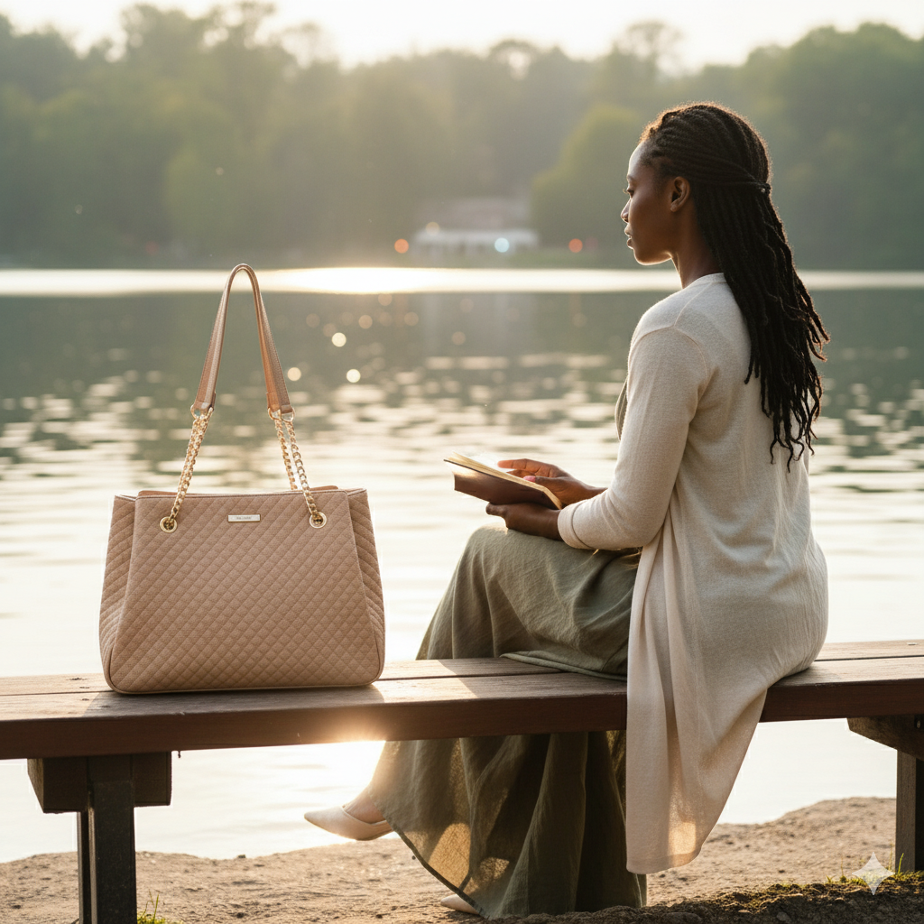 Elegant and chic, this small city tote bag for women is delicious! Its colors make it lovely and its finishes are well thought out.