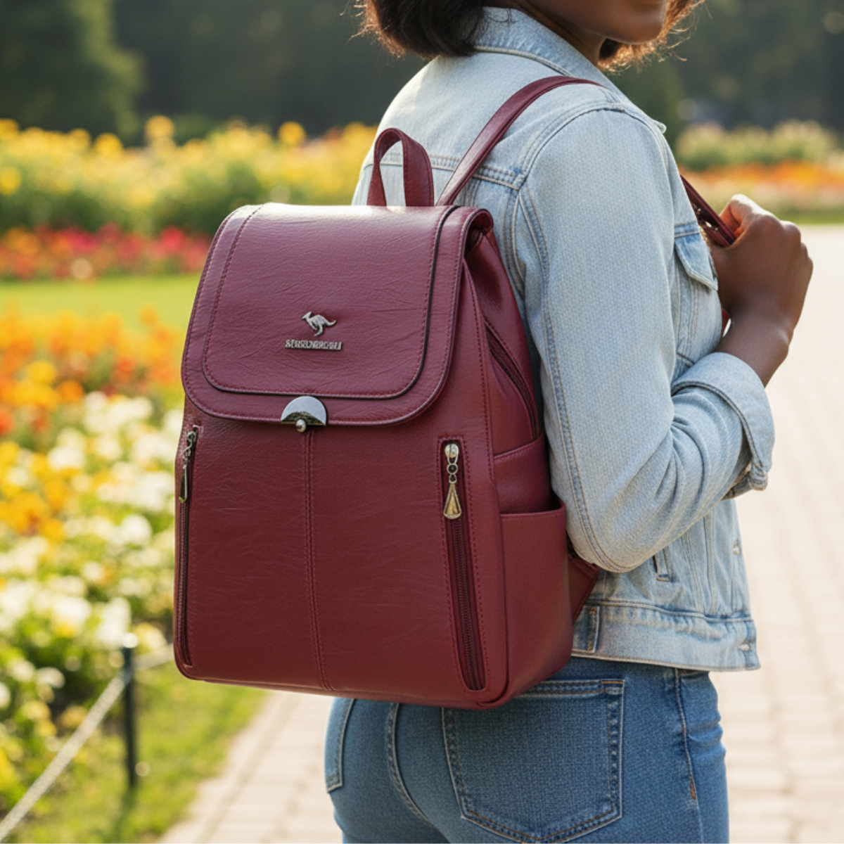 it is large enough for your personal most intimate belongings (iPad, umbrella, water bottle …) It adapts to all situations ( city, park, work.). Thanks to its four metal feet , you can place it wherever you go … the four feet will protect the underside of your bag.